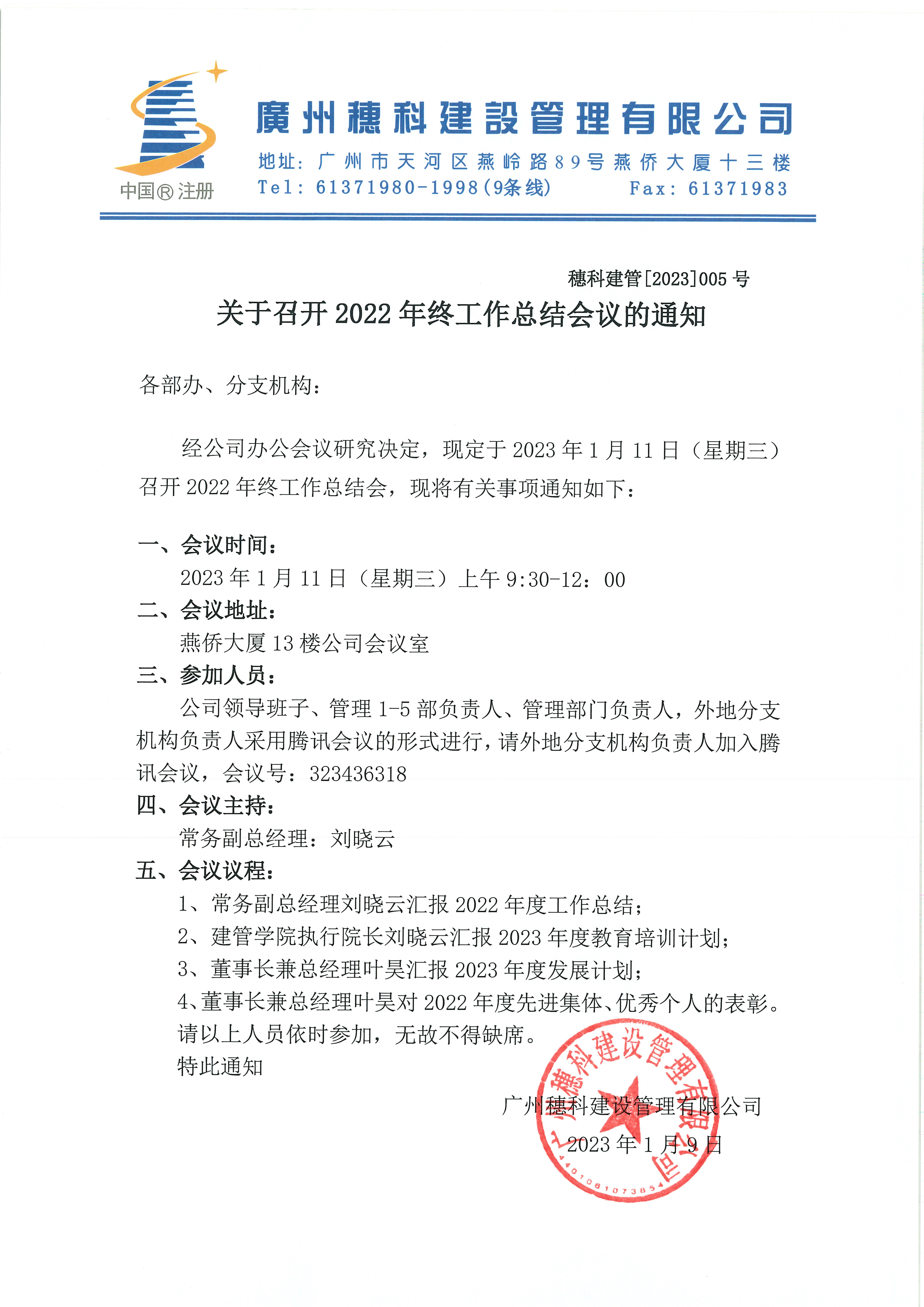 關(guān)于召開(kāi)2022年終工作總結(jié)會(huì)議的通知